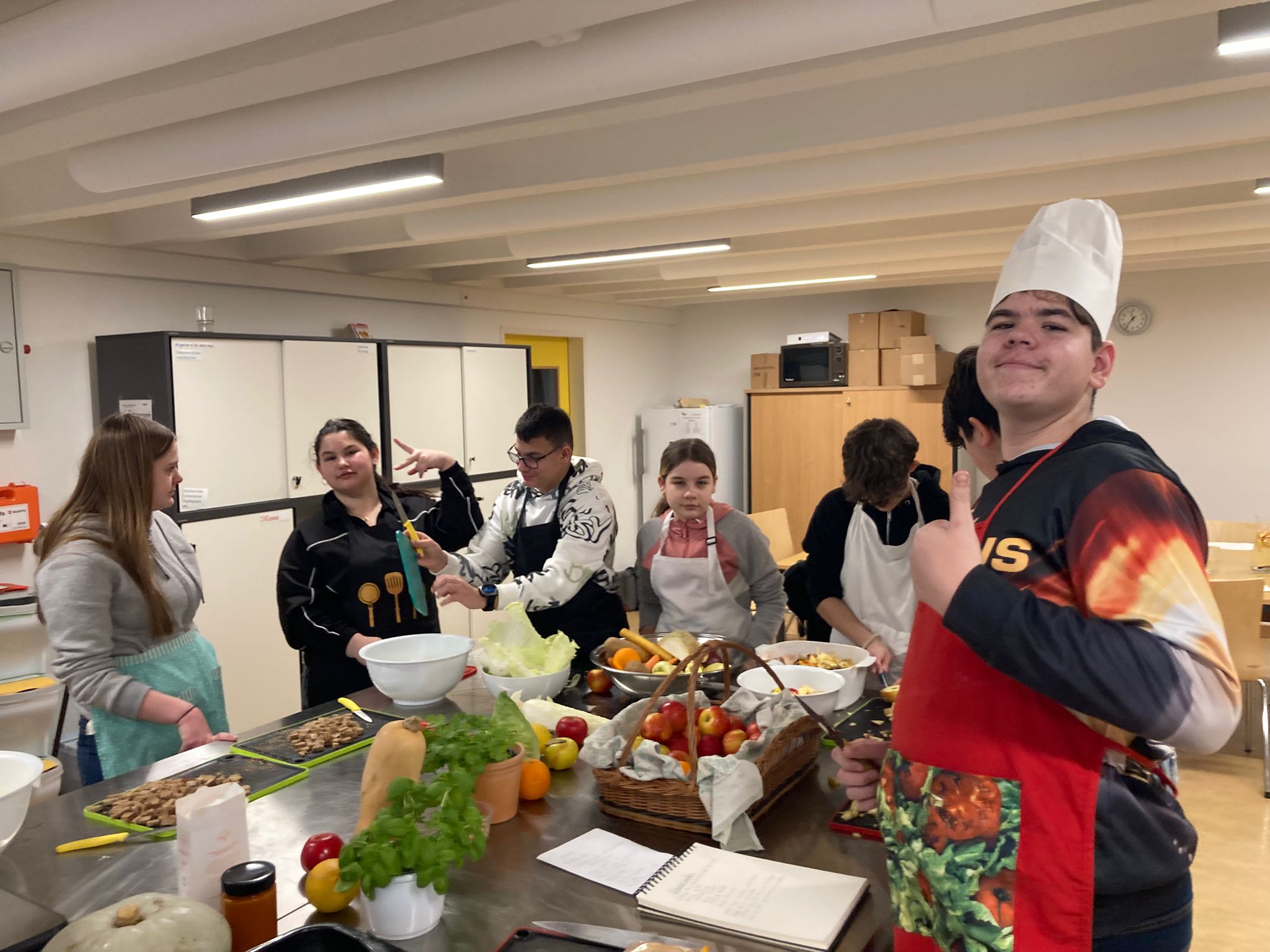 Danach war die 6. Klasse an der Reihe. Auch hier wurde mit viel Engagement gearbeitet. Die Schülerinnen und Schüler übernahmen selbstständig Aufgaben, zeigten großes Verantwortungsbewusstsein und bewiesen Teamgeist in der Küche. Das gemeinsame Kochen und Essen sorgte für eine angenehme Atmosphäre und viele schöne Gespräche.